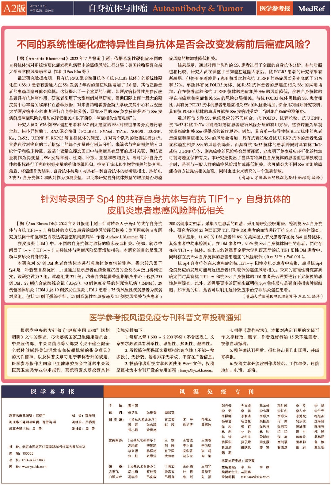 医学参考报风湿免疫专刊2023年第10期电子版
