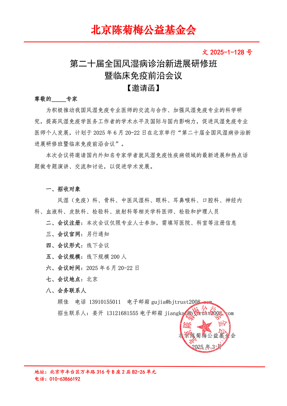 会议通知-第二十届全国风湿病诊治新进展研修班暨临床免疫前沿会议