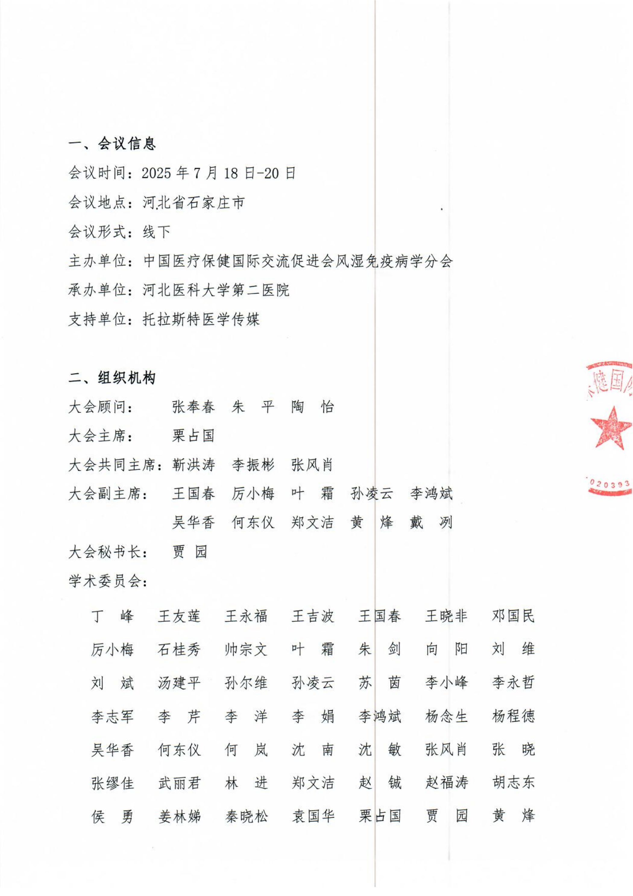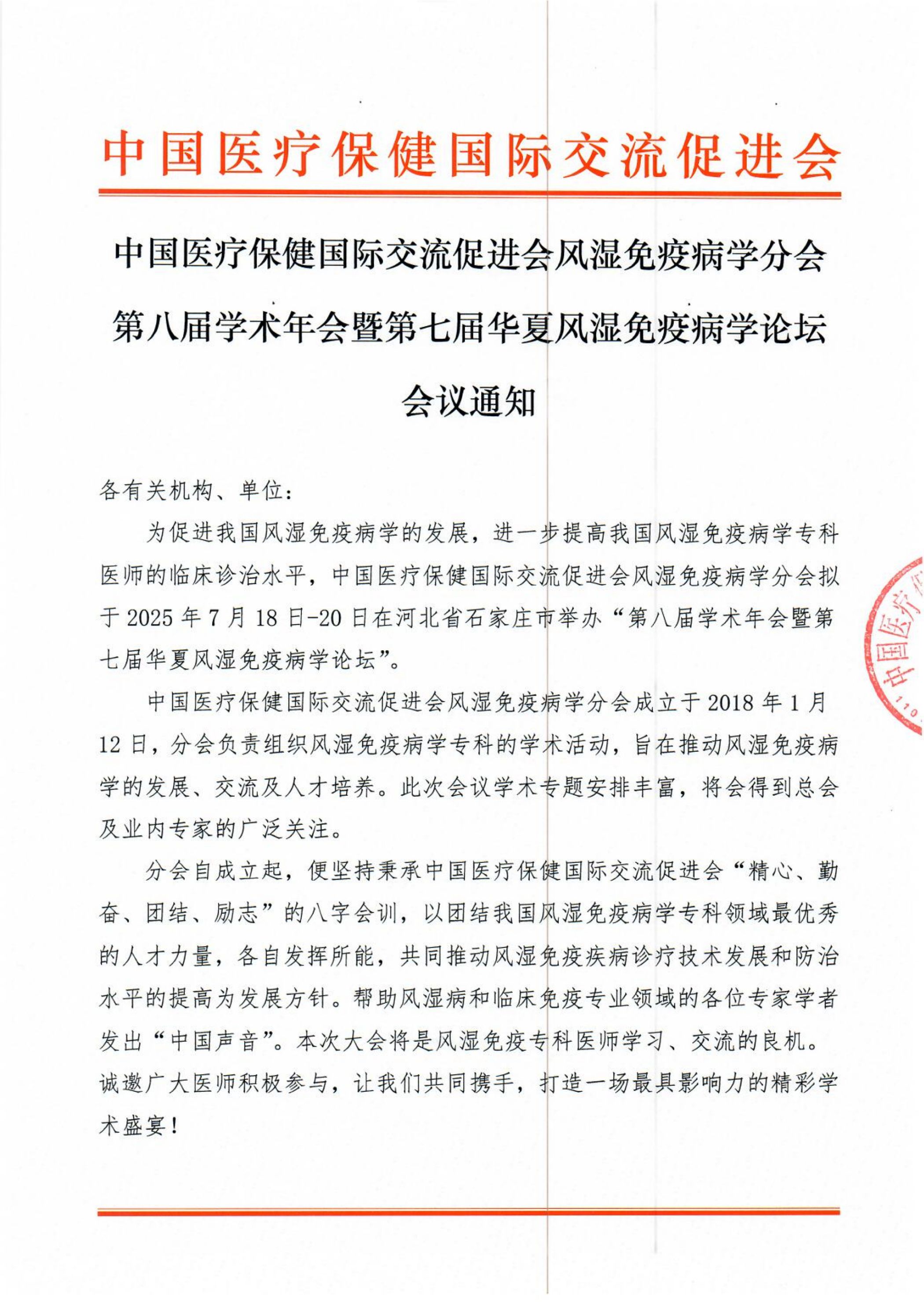 会议通知-中国医疗促进会风湿免疫分会第八届学术年会暨第七届华夏风湿免疫病论坛